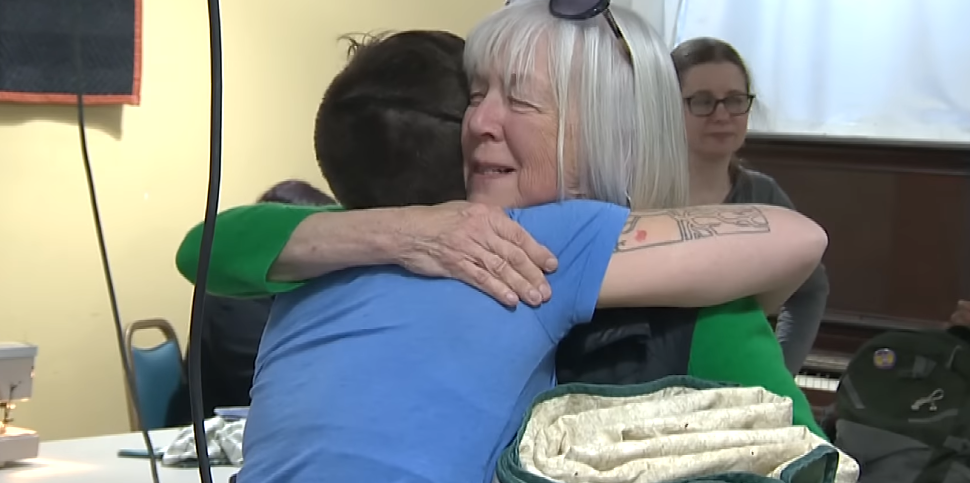 Not everything here plugs into a wall. Melissa Madenski brought a 40-year-old quilt made by friends, some now gone. “It’s like being wrapped in memories,” she said.